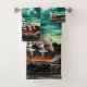 Pirate ship on turbulent seas. bath towel set
