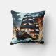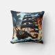 Pirate Ship Sailing Through Stormy Seas at Dusk Cushion