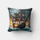 Pirate Ship Sailing Through Stormy Seas at Dusk Cushion