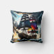 Pirate Ship Sailing Through Stormy Seas at Dusk Cushion