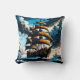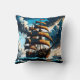 Pirate Ship Sailing Through Stormy Seas at Dusk Cushion