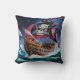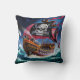 Pirate Ship Sailing Through Stormy Seas at Dusk Cushion
