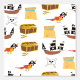 A cute pirate themed pattern. A kids pattern design perfect for a treasure hunters and pirate themed enthusiasts. Pirate hat, pirate ship, parrot, treasure chest, skull and crossbones and X marks the spot pirate design.