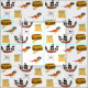 A cute pirate themed pattern. A kids pattern design perfect for a treasure hunters and pirate themed enthusiasts. Pirate hat, pirate ship, parrot, treasure chest, skull and crossbones and X marks the spot pirate design.