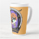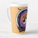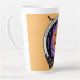 Pirate skeleton cat Latte Mug: This digital print design features a whimsical and spooktacular scene of a pirate skeleton cat, complete with an eye patch and pirate hat, merrily carrying a grinning pumpkin. The playful combination of a feline pirate and a Halloween pumpkin creates a delightful and slightly eerie atmosphere. It is a perfect addition to your festive decor or for anyone who loves a touch of the supernatural with a twist of humor.