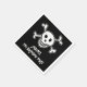 Pirate skull and crossbones Birthday party napkins. Personalised disposable paper napkins for childrens Birthday celebrations. Black pirate flag with jolly roger design. Add your own name and age to the template. Kids party supplies. Fun typography template for boys and girls. Also nice for baby shower theme.