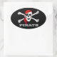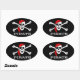 In these modern times, pirates sail the seven interstates in our wheeled land crafts. It matters not if ye be driving a Pinto or a Mustang, you’re a pirate at heart. Show the person riding your bumper that he, or she, better back off because they’re dealing with a pirate! This classic skull and crossbones design on a 4.5 inch by 2.7 inch oval sticker will strike fear in the hearts of those who dare get in your way. These oval stickers are also good for laptops, notebooks, the door to your basement so your Mum won't bust in while you're playing with your action figures, or any other smooth dry surface. Please drive and play with your action figures responsibly.