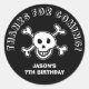 Pirate skull and crossbones stickers for party favours or as envelope seals. Cute jolly roger thanks for coming stickers for kids Birthday party or baby shower. Pirate theme design with skeleton skull and cross bones. Black and white flag colours. Add your own personalised name of child. Fun for 5th 6th 7th 8th 9 th Bday.
