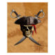 Pirate skull, eye patch, pirate hat, and two crossed swords for a classic Jolly Roger with a vintage nautical map of the Florida Keys, historical home and base for Pirates.