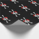 Wrapping paper shown with a cute pirate skull print on a black background. Customise this item or buy as is.