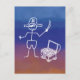 Pirate Stickman With Treasure Chest Watercolor Postcard