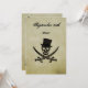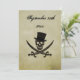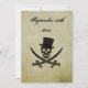 A classic Jolly Roger, with optional top hat, and Rackham crossed swords on an antique grunge look background and room for all your custom invitation details in pirate talk!