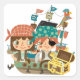 Two pirates and a parrot wearing skull caps, a pirate ship with skull and crossbones flags, a treasure chest filled with gold coins and jewels, great for pirates of any age. Pirate T-shirts, bibs, mugs, cards, stickers, key chains, pillows, keepsakes, magnets, wall clocks, and much more.