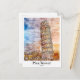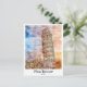 Pisa Tower Italy Travel Watercolor Hand Drawn Postcard
