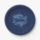 Paper plate featuring the symbol for Pisces in soft silver blue, overlaid with the stars of the constellation, against a starry sky background in deep midnight blue