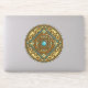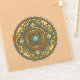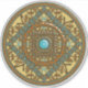 This mandala was designed for the zodiac sign, Pisces, depicting an aquamarine stone in the centre surrounded by elements representing the sign, such as the symbol for the sign, the constellation, and the alchemical symbol for Water, as well as filigree vines and weaves wrapping it all into a solid image in shades of aqua, brown, and bronze.