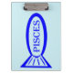 This awesome clipboard features an outline of a blue fish with pretty detailing inside. There is also text that says Pisces inside the outline of the fish. This design is ideal for people with Birthdays Between 19 February and 20 March.