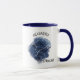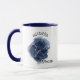 This coffee mug features an artistic representation of the Pisces constellation set against a watercolor backdrop that mimics a starry night sky. The design incorporates shades of deep blue and white, suggesting the vastness and mystery of space. An optional custom name gently curves above the constellation and can easily be changed or removed by clicking "Personalise this template". The constellation itself is depicted by simple white lines connecting stars, which are represented by brighter white dots. Below the constellation, the word “Pisces” is written in a clear, bold typeface, grounding the design with a touch of modernity.