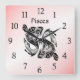 Pisces the Fish Zodiac Clock Pink