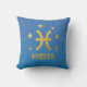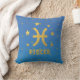 Custom throw pillow for "Pisces" with golden zodiac symbol and gold stars, with blue gradient background.