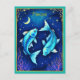 Postcard in a Pisces illustration featuring two turquoise blue fish swimming in opposite directions against a starry, deep blue background. A crescent moon and stars enhance the celestial theme, evoking the imaginative spirit of the Pisces zodiac sign.