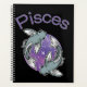This planner features a Pisces Zodiac Sign illustration inside the purple circle with the word Pisces over the top in a Afrah print font with purple letters grey outline in this Zodiac Horoscope planner on a black background. The planner's pages of are printed on high-quality paper with wire binding and grid transparency with a Pisces Symbol printed accross the back. This planner includes a monthly overview and weekly planning space made with 60 lbs. paper. This planner will make the perfect gift for yourself or others.