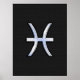 Pisces Zodiac Symbol on Black Snake Skin Style Poster