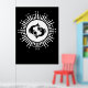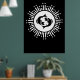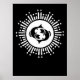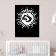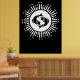 This bold black and white design features the Pisces zodiac symbol with two mirrored fish at the centre, surrounded by a radiant starburst pattern. The circular layout is accented with radiating lines and twinkling stars, creating a striking celestial effect. Its clean contrast and cosmic theme capture a mystical, modern vibe perfect for astrology enthusiasts and dreamers alike.