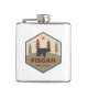 The flask itself is fine. It’s a cheap flask, obviously bought in bulk, however am prepared to overlook that. Given that it is a personalized item, I would have liked to have seen gift boxing instead of the generic packaging. Terrible printing, and/or quality. It’s a cheap, tacky vinyl. It is not cut straight and is also applied in a way that it is overhanging the bottom, causing the glue to catch on items and it will eventually roll and tear, damaging the wrap.