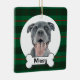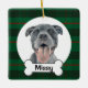This gray pit bull / staffy ornament is a great gift! The green plaid background matches all holiday decor. The dog was hand painted by me and made available as this adorable ornament! Customize the text to personalize the gift. Visit my shop for lots of other variations of this artwork and other holiday backgrounds including red and green plaid and red buffalo check.