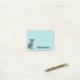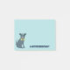 This custom notes pad features an illustration of a handsome pup. This dapper dog is wearing a pair of teal coloured glasses and a lime green bow tie and is set against a light blue background. Your own custom message appears beside the graphic in navy blue lettering.