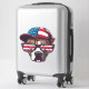 The stick looks amazing. Unfortunately, it would not stick on our suitcase as it was textured. When we found a non-textured (smooth) suitcase, the sticker stuck and looks great. The printing looked awesome.