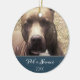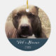 Pitbull Dog Pet Photo Blue Christmas Personalised Ceramic Ornament has dog's picture, name and year on both sides. Choose your favourite dog photo for the ornament or you can keep as shown. Design created from a personal photo and we wanted to share with everyone by designing this ornament. Makes a great gift idea for a pitbull owner or dog lover. Customisable dusty blue stripe on lower area.