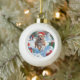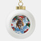 Pitbull Dog Running in Snow with Christmas Hat Ceramic Ball Christmas Ornament