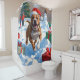 Pitbull Dog Running in Snow with Christmas Hat Shower Curtain