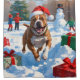 A strong and playful Pitbull dashes through the snowy landscape, wearing a festive red Christmas hat full of holiday spirit. The joyful winter scene reflects the energy, loyalty, and charm of this beloved breed, blending the magic of the season with the personality of the Pitbull.