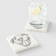 The coasters are gorgeous, a quality feel and heavy weight. They look like a precious archeological find. A rustic stone juxtaposed with a modern floral black and white print. I like the way the print goes slightly imperfect on the cut stone edges giving them a kind-of natural beauty.