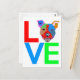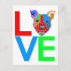 Colourful smiling pitbull face with letters L,V and E. Digital designs creating a patchwork pattern. Customise background colour.