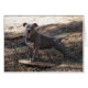 This greeting card says, "Even the fun things aren't fun when you're gone. Hurry Back!" This card shows a photograph of a Blue Nose Pitbull named Sarge. Sarge is standing with his front feet on his favourite toy, a skateboard. His hind legs are extended and his ears are high and alert as this dog looks at you in a handsome pose.