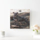 This wall clock shows a handsome Blue Nose Pitbull named Sarge. Sarge is standing with his muscular hind legs stretched out behind him and his front paws on top of his favourite toy, a skateboard. This wall clock is perfect for dog lovers.