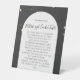 It is sturdy than I expected. Was worried about the material being flimsy but it is not. It is printed on some sort of plastic material. It should serve well at our wedding as long as wind isn’t too bad. Otherwise we will put some paper weights behind it and should be fine.