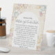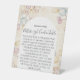 It is sturdy than I expected. Was worried about the material being flimsy but it is not. It is printed on some sort of plastic material. It should serve well at our wedding as long as wind isn’t too bad. Otherwise we will put some paper weights behind it and should be fine.