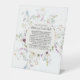 It is sturdy than I expected. Was worried about the material being flimsy but it is not. It is printed on some sort of plastic material. It should serve well at our wedding as long as wind isn’t too bad. Otherwise we will put some paper weights behind it and should be fine.