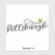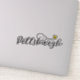 Scripted font - Pittsburgh with the a Star of David in a heart design in black and gold.