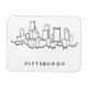 This design features a hand drawn sketch of the Pittsburgh skyline on a dark grey background.
