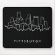 This design features a hand drawn sketch of the Pittsburgh skyline on a dark grey background.