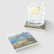 The coasters are gorgeous, a quality feel and heavy weight. They look like a precious archeological find. A rustic stone juxtaposed with a modern floral black and white print. I like the way the print goes slightly imperfect on the cut stone edges giving them a kind-of natural beauty.