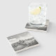 The coasters are gorgeous, a quality feel and heavy weight. They look like a precious archeological find. A rustic stone juxtaposed with a modern floral black and white print. I like the way the print goes slightly imperfect on the cut stone edges giving them a kind-of natural beauty.