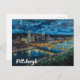 Celebrate the "City of Bridges" with this vibrant, artistic postcard featuring the Pittsburgh, Pennsylvania skyline. This unique painted style highlights the famous yellow bridges spanning the confluence of the Allegheny and Monongahela Rivers at the Golden Triangle. Perfect for Pennsylvania locals, sports fans, or art lovers who appreciate this iconic city view. Use this postcard for travel greetings, as a piece of unique artwork, or for corporate mailing from the Steel City.