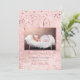 PixDezines A Star is born, announcement cards, featuring rose gold REAL snow bokeh background and twinkle stars to welcome your new addition. Photo collage on reversed side. We accented with fun and modern handwritten script. Perfect for winter baby girl birth announcements.